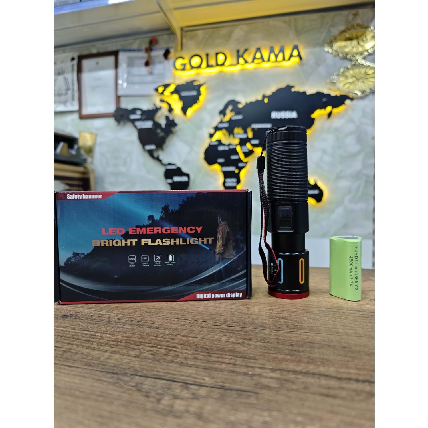 Bu ürün, LED Emergency Bright Flashlight (LED Acil Durum Güçlü El Feneri) olarak tasarlanmış çok amaçlı bir güvenlik ve aydınlatma cihazıdır.;